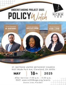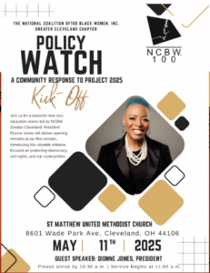On May 18, 2025, following morning worship at St. Matthew United Methodist Church, a different kind of gathering took place—one rooted in faith, a sense of urgency, and a commitment to truth. This was the launch of Policy Watch, a non-partisan, faith-centered civic education series created by the National Coalition of 100 Black Women, Greater Cleveland Chapter (NCBW-GCC). Designed to bring awareness to Project 2025 and its real-world consequences, the first session set the tone for what this series is all about: equipping our community with knowledge, tools, and a path forward.